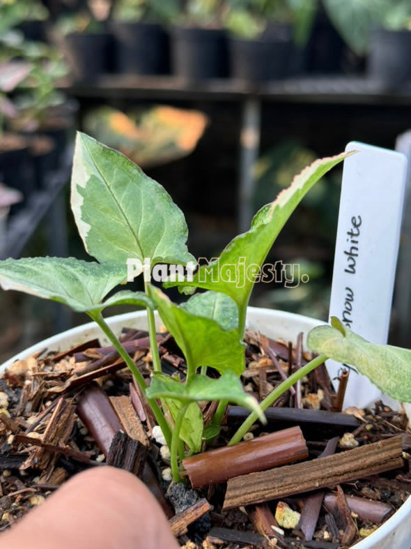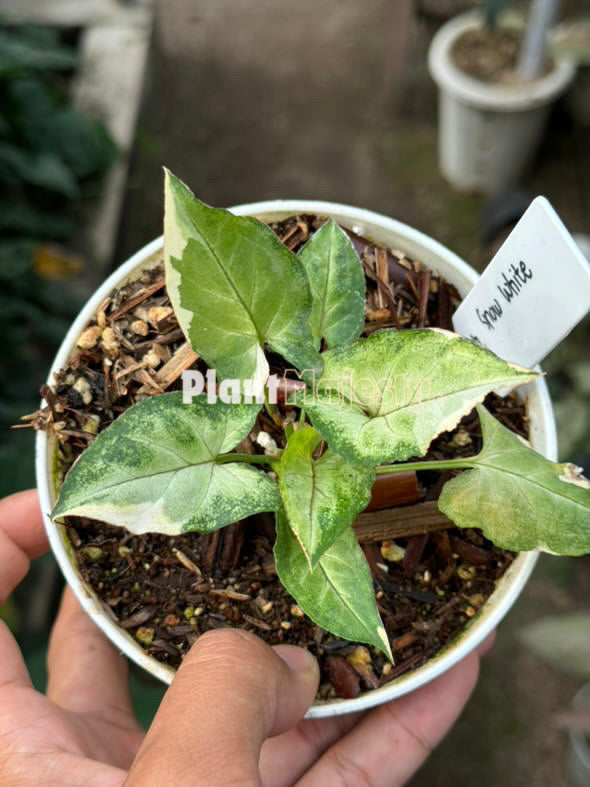 Syngonium Snow White is a stunning variety with crisp, white-frosted foliage, creating an elegant contrast against deep green veins. This plant's ethereal beauty and rarity make it highly sought-after.